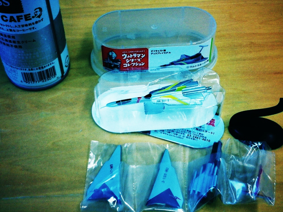 2011年9月14日2019年2月7日男のロマン?カテゴリー 未分類BOSSのおまけに付いているウルトラマンシリーズが熱い。 なかでも、ぐっときて買ってしまったのがBOSS缶2本セットについてるこれ。ウルトラホーク一号。 中を開けると、パーツが出てくる。 ちゃ、ちゃ、っと組み立てること数秒で完成。ウルトラホーク一号のできあがり。 おまけの割りにクオリティ高すぎです。 これで、今日一日乗り切る。TweetPocket 関連シェア