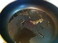 で、ふたたびフライパンに油をひいてクミンシード、みじん切りのニンニク、タマネギの順でいためる。